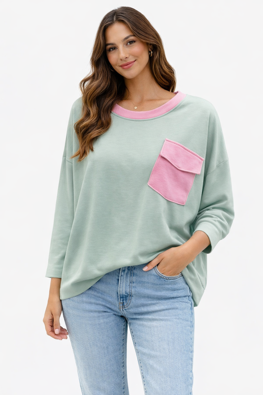 Sudadera bicolor con bolsillo contraste