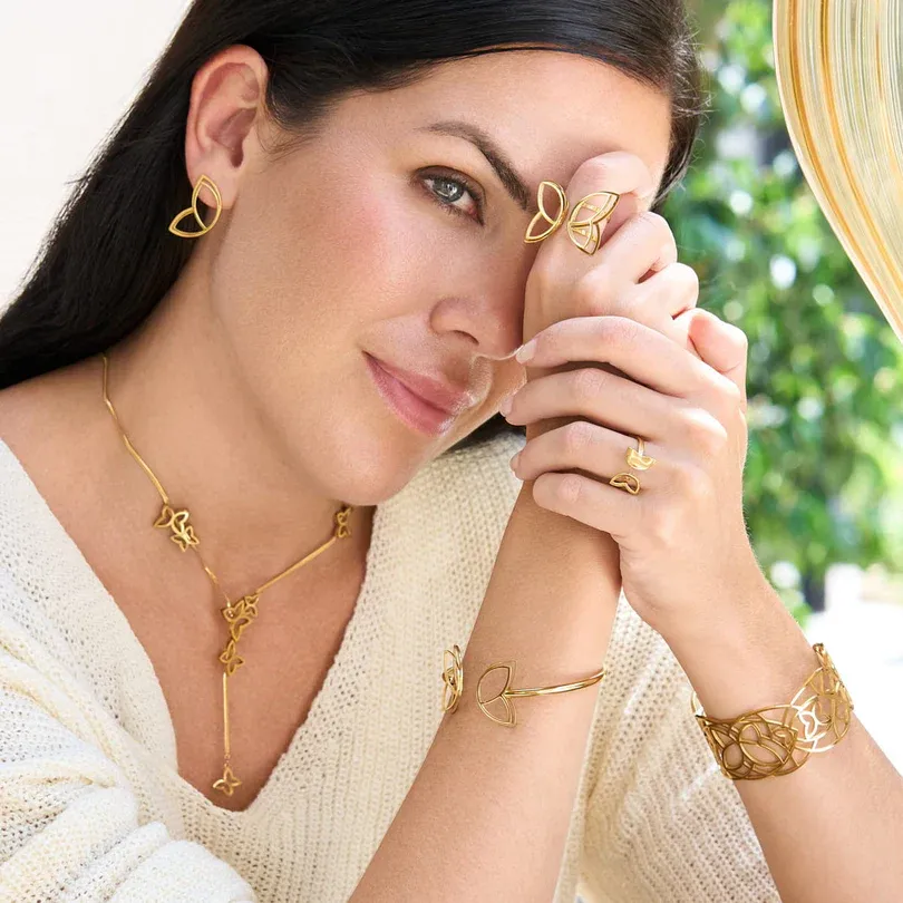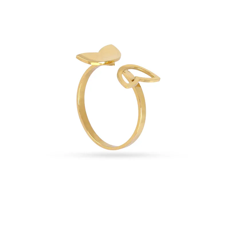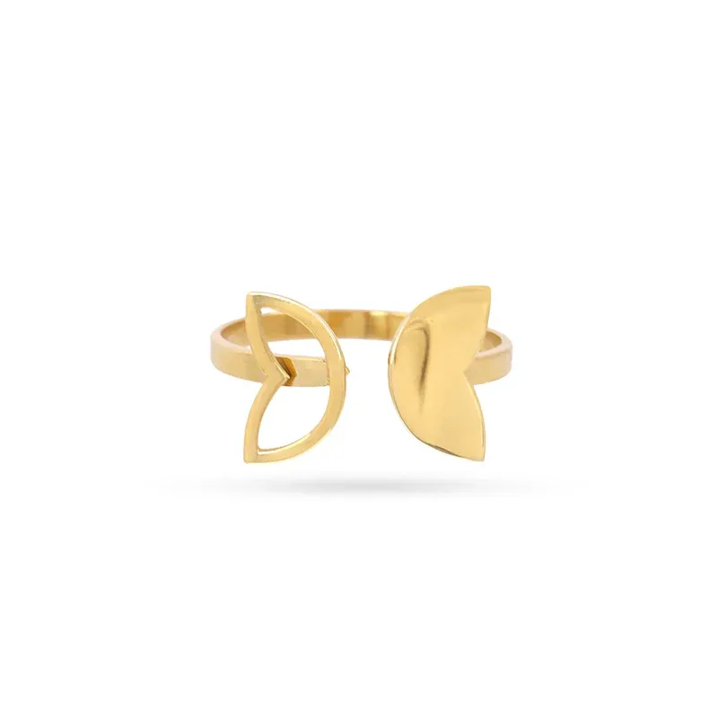 Anillo Anartxy Kaleia Oriole, Complementos Rocío Vera, mi Anillo Kaleia Oriole es de acero quirúrgico color oro con un diseño geométrico inspirado en mariposas. Es de talla única ajustable, hipoalergénico y resistente al agua, ideal para un estilo sutil y sofisticado.