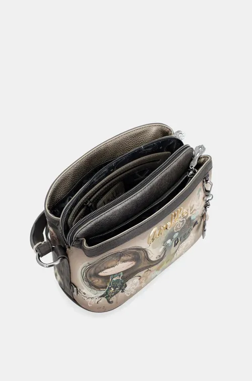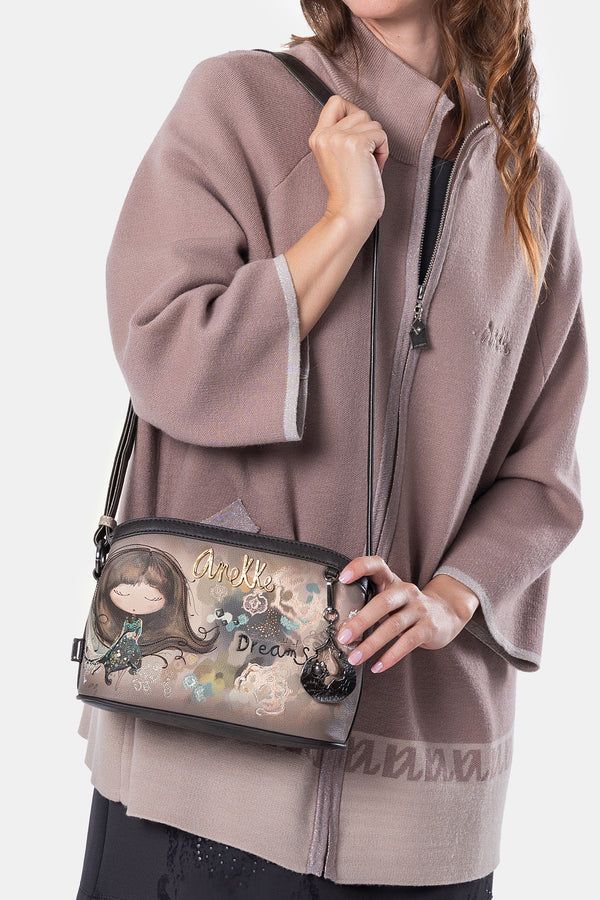Esta Bandolera Anekke mediana Real es tu aliada perfecta en el día a día. Con su diseño de tres compartimentos, te asegura una organización superior para llevar todo lo que necesitas, mientras que su mensaje te inspira a creer en ti y a recordar que tus sueños no tienen límites.