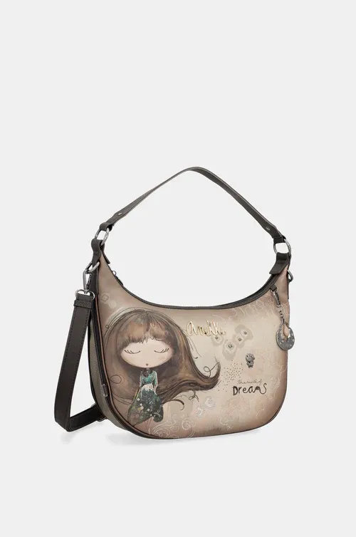 En Complementos Rocío Vera, mi Bolso de Hombro Anekke Real (aprox. 31-38 cm de largo) tiene cierre de cremallera y un diseño inspirado en hacer los sueños realidad. Incluye doble asa de hombro y múltiples compartimentos interiores.