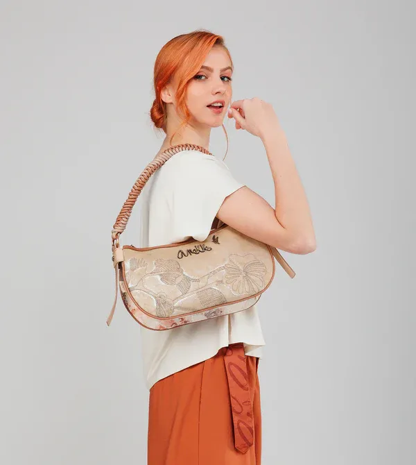 Bolso de hombro Anekke ovalado Whispers, Este original bolso de hombro con forma ovalada es tan coqueto como combinable. Cuenta con cierre de cremallera, forro interior y bolsillos, además de bolsillo en la parte trasera. A la hora de colgarlo cuenta con dos posibilidades: como bolso de hombro con el asa corta, o incorpórale el asa bandolera extraíble, regulable a diferente largo, para usarlo como bandolera. Porque los recuerdos inspiran el futuro, ¡prepárate a disfrutarlos con Anekke!