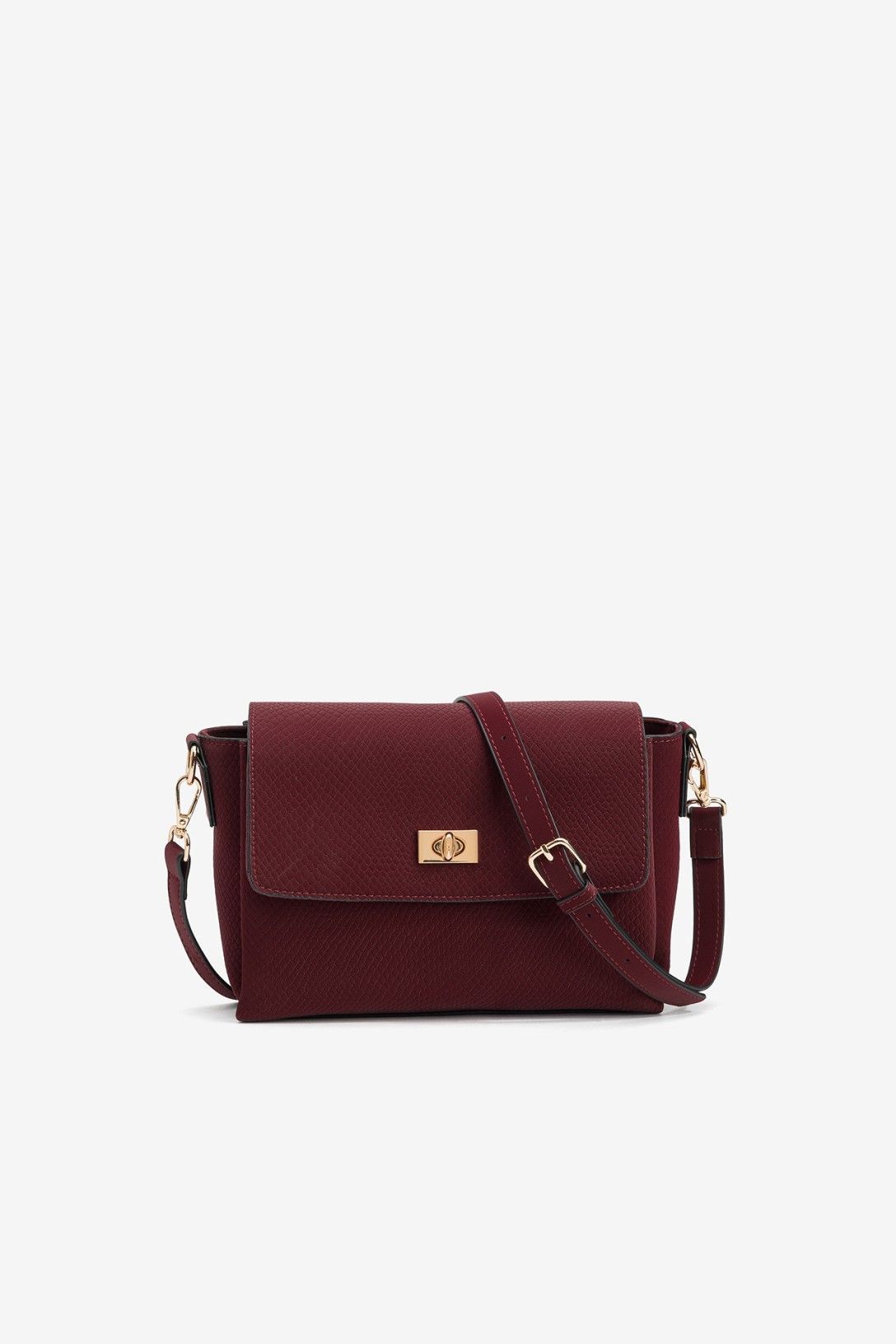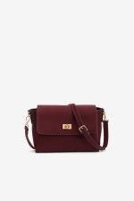 Bolso bandolera disponible en negro o granate, con textura y detalles dorados. ¡El equilibrio perfecto entre diseño sofisticado y funcionalidad total!