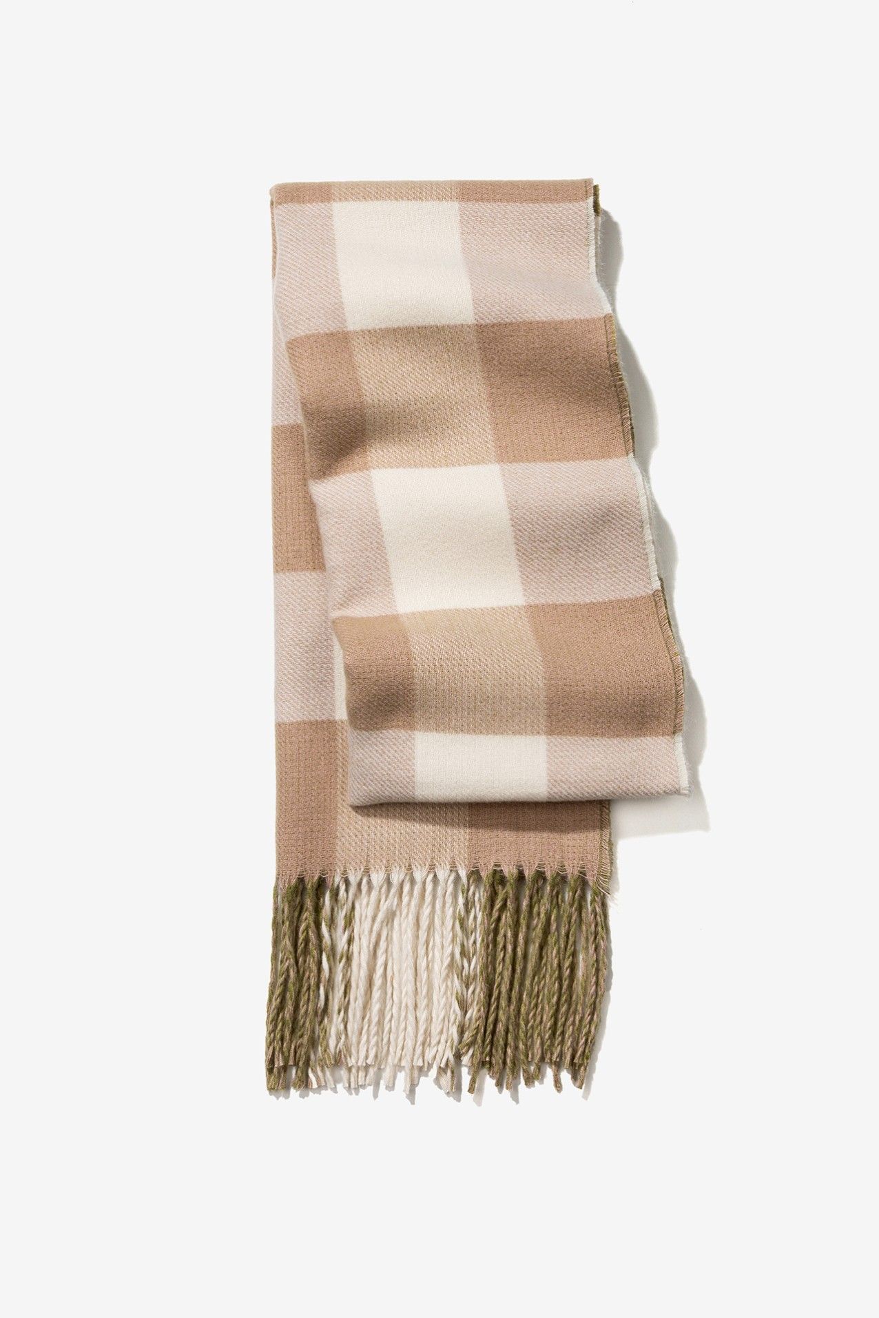 Esta Bufanda Vilanova Bicolor de Cuadros es un imprescindible para abrigarte con estilo. La mezcla de verde y beige en un patrón de cuadros atemporal es fácil de combinar, y los flecos en los extremos le dan un acabado clásico y sofisticado.