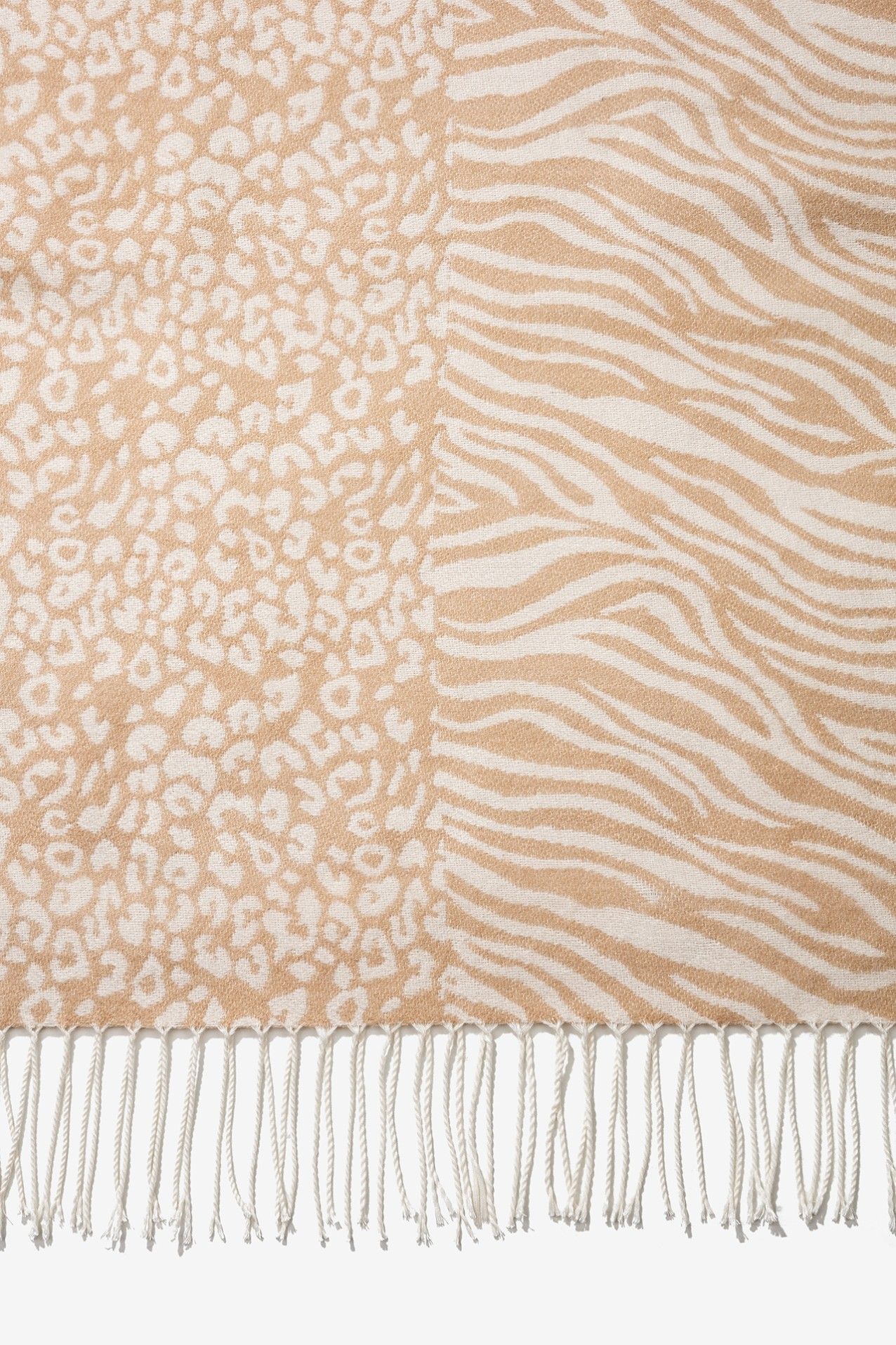 Estampado animal en tonos neutros y flecos blancos. ¡El accesorio perfecto para un estilo moderno y atrevido!