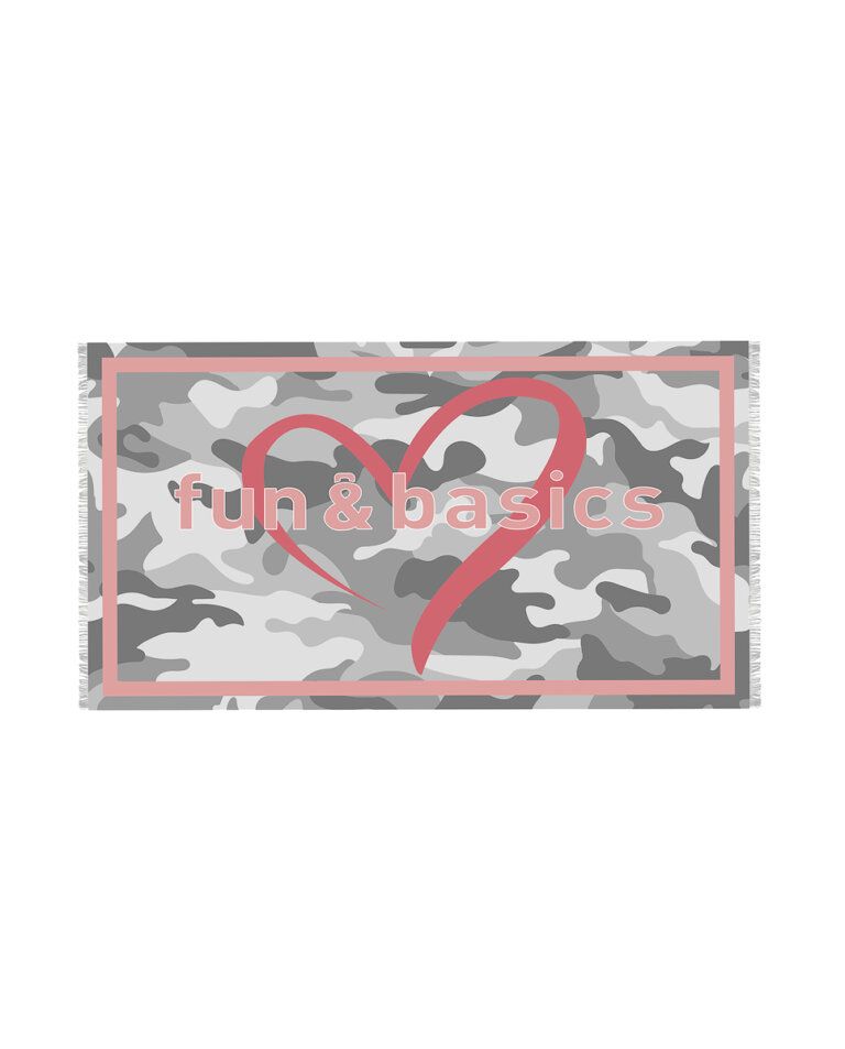 Este PañueloFun&Basic fusiona dos estilos: la audacia del fondo de camuflaje y la dulzura del corazón en el centro, junto a la estampación del logo en blanco. Es el accesorio perfecto para quienes aman los contrastes y quieren inyectar personalidad a sus looks.