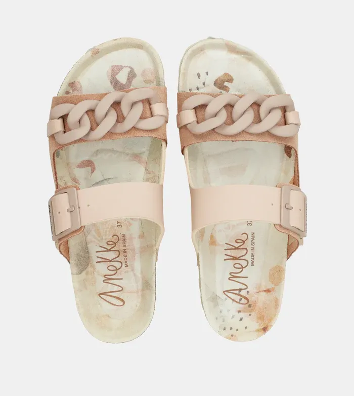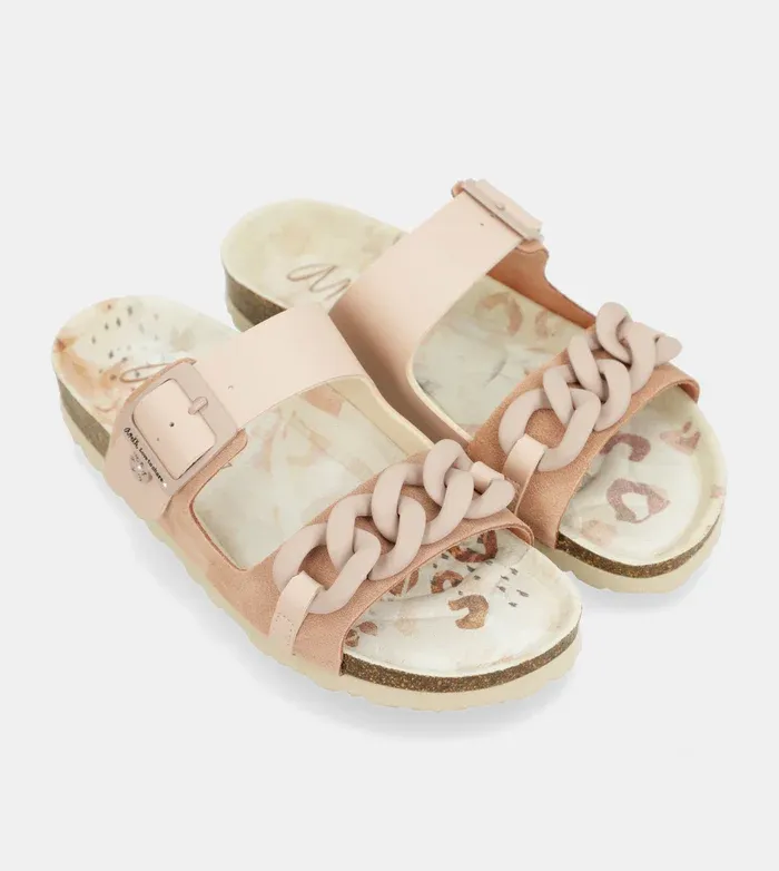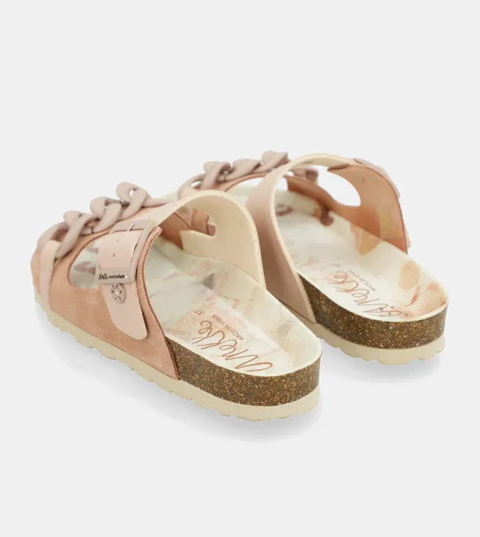 ¡Las sandalias bio de Anekke eslabones rosa son la combinación perfecta de comodidad y estilo chic! Base de corcho natural, hebilla ajustable y eslabones decorativos. ¡Ven a Complementos Rocío Vera en Elda y consigue las tuyas!
