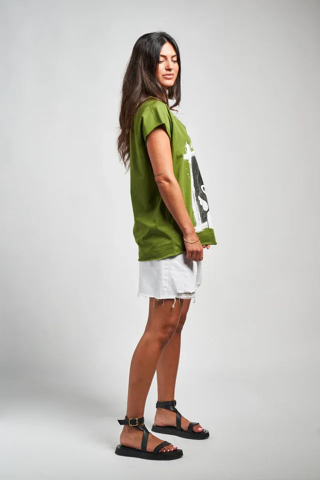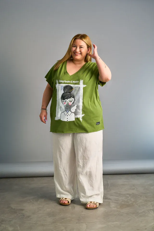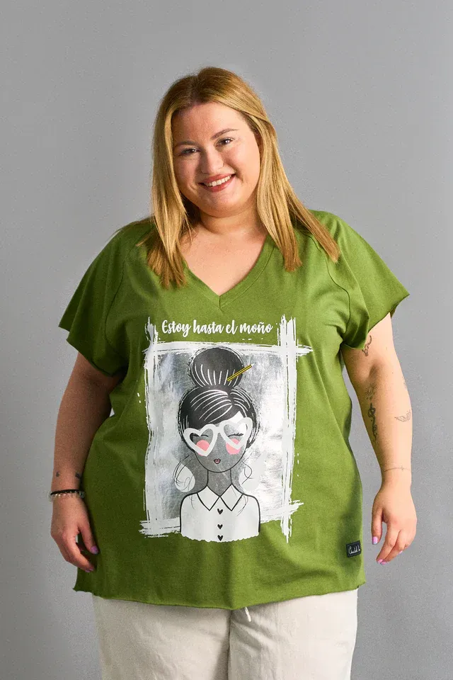 Camiseta de Anabel Lee moño En Complementos Rocío Vera, mi Camiseta Anabel Lee Moño es de corte oversize, con manga corta, escote pico, corte vivo y maxi print "Estoy hasta el moño" con foil. ¡Pura actitud y comodidad!