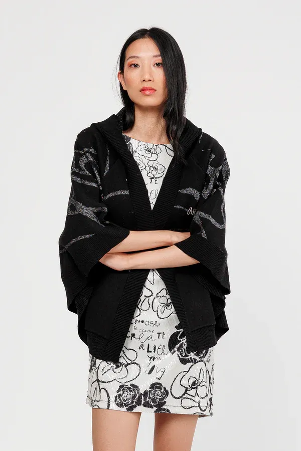 Chaqueta Anekke estilo poncho negra, Las chaquetas tipo poncho son ese abrazo cálido que necesitas para tus días más frescos. Suaves, originales y llenas de personalidad, se convertirán en tu mejor aliada para este invierno.