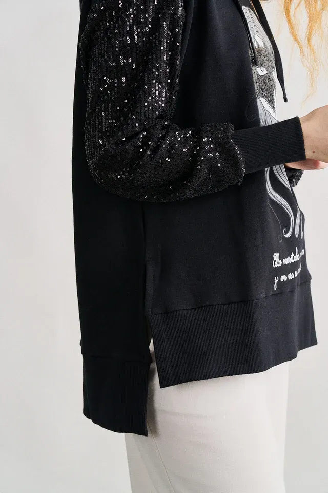 -Maxi print delantero con detalle de lentejuelas, cristalitos y foil.